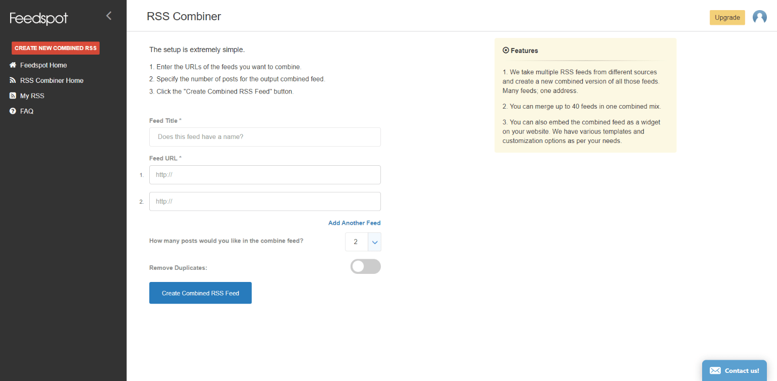 Feedspot Reader lets you follow multiple blogs, podcasts or news websites from one place. Feedspot's RSS Combiner takes multiple RSS feeds from different sources and creates a new combined version of all those feeds. You can also access RSS feed of Individual folders and favorite posts.